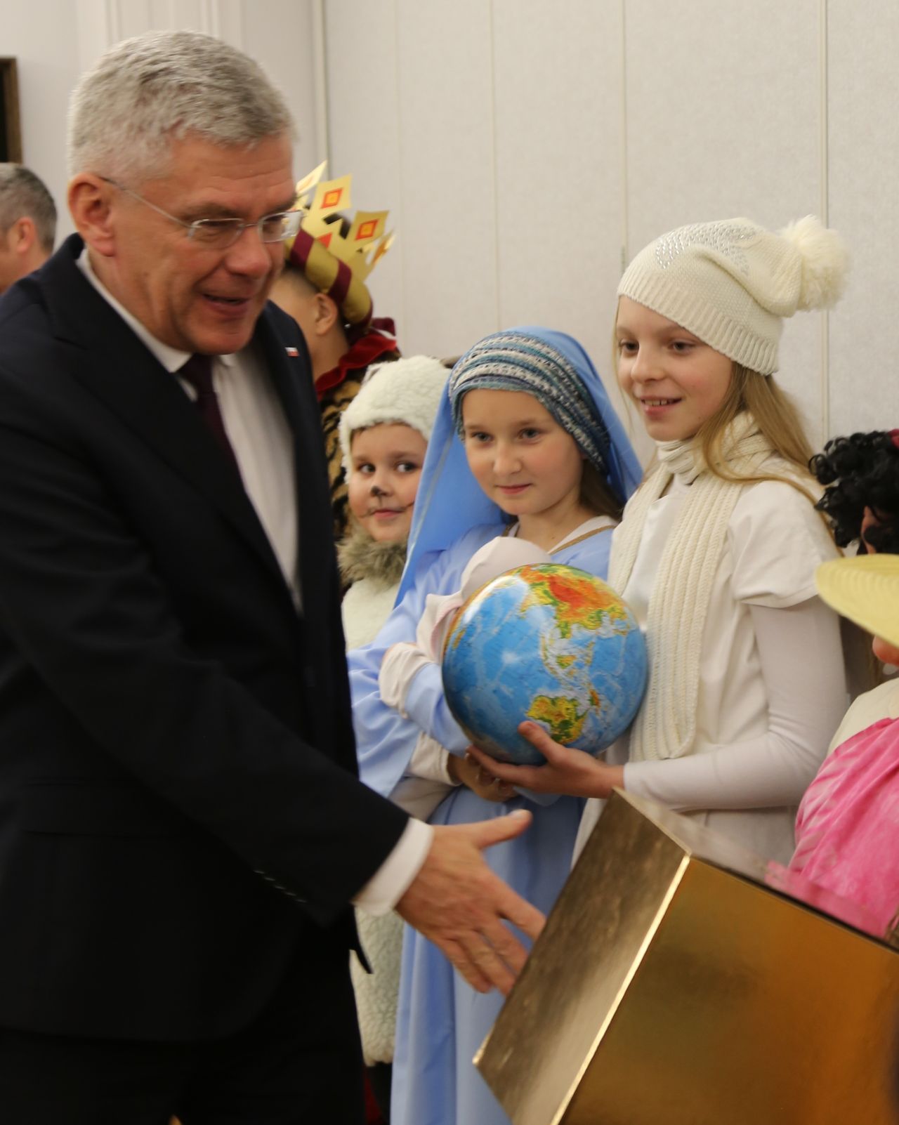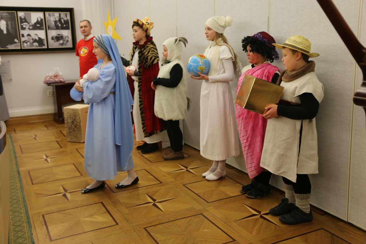 Na koniec przedstawionej scenki dzieci wręczyły Panu Marszałkowi pamiątkę z przesłaniem pokoju i noworocznymi życzeniami. Przy okazji tego spotkania grupa kolędników zwiedziła senat i sejm, a także siedzibę dyrekcji krajowej Papieskich Dzieł Misyjnych.